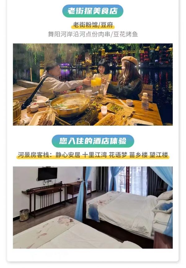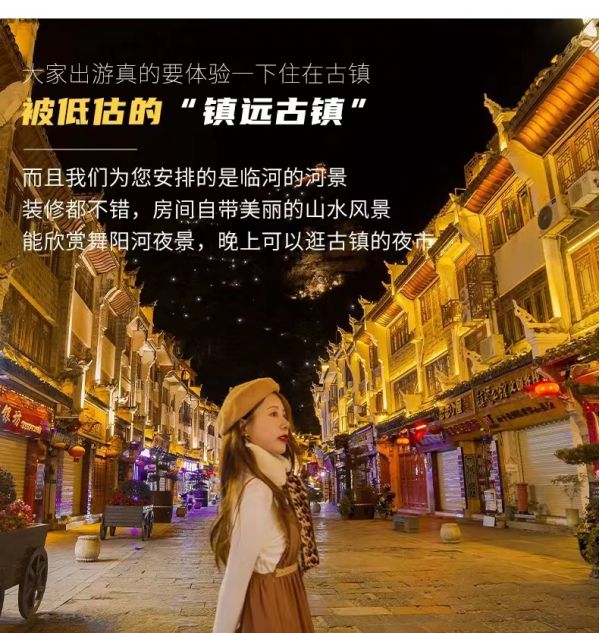 1.最A(yù)保證:保證入住鎮(zhèn)遠(yuǎn)古鎮(zhèn)景區(qū),尊享臨河河景房,不出房間即可欣賞舞陽(yáng)河夜景。