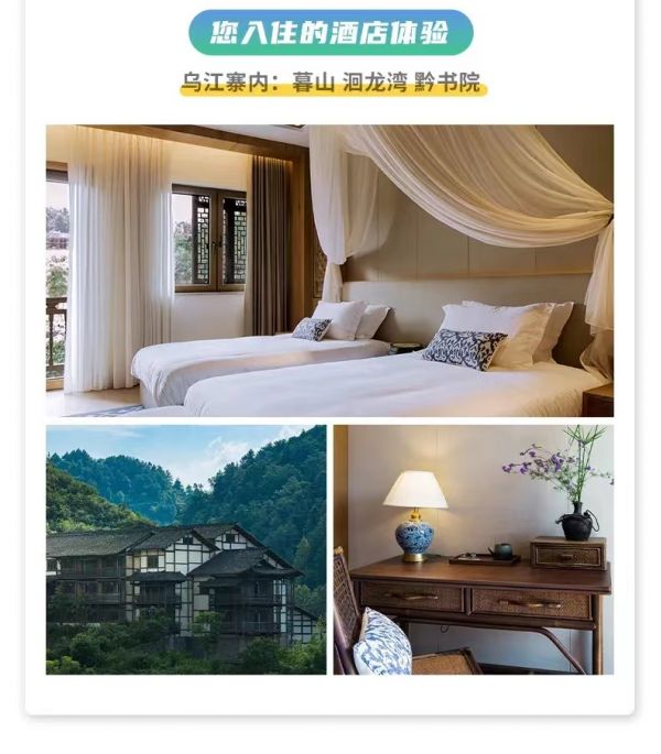 2.最A(yù)途窩:全程優(yōu)選高品酒店,豪華舒適,保證入住烏江寨景區(qū),深度休閑游覽景區(qū)。