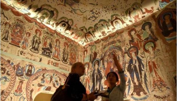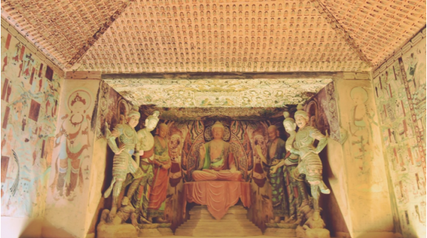 莫高窟,坐落于河西走廊的西部盡頭的敦煌。它的開鑿從十六國時期至元代,前后延續約1000年,這在中國石窟中絕無僅有。它既是中國古代文明的一個璀璨的藝術寶庫,也是古代絲綢之路上曾經發生過的不同文明之間對話和交流的重要見證。