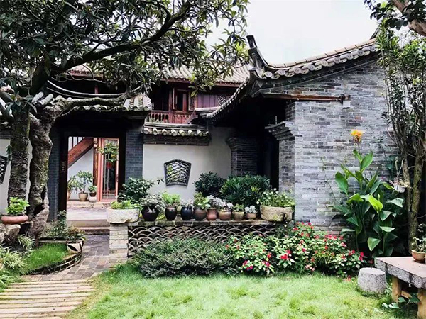 陽(yáng)光透過(guò)木雕花窗灑進(jìn)房間,小天井的上頭,云朵隨風(fēng)游走,主人家基本還原了民居的風(fēng)格,情懷滿滿。庭院之中一步一景,魚池、柚子樹,以及精美的石雕、盆景,都出現(xiàn)在恰到好處的位置。院落相連,精致而各具匠心。