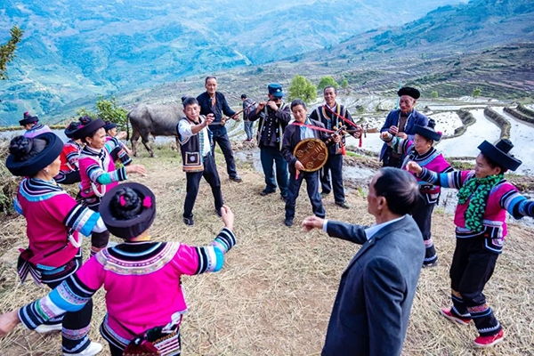 哈尼族歌舞絢爛多彩、傳播廣泛。哈尼铓鼓舞雄渾豪放,氣勢軒昂,質樸勁健,熱情灑脫,表現出了哈尼人大山一樣的性格,森林一樣的情懷;哈尼古歌以口傳心授的方式代代相傳,歌唱無處不在,且成為這個民族的生存狀態和文化傳承的方式;多聲部民歌源于哈尼族梯田文明,以歌頌勞動、祈福豐收、贊美愛情為主要內容,通過唱、跳、彈等藝術表現形式展現哈尼族的日常生活,為第一批國家級非物質文化遺產;“樂作舞”是集歌、舞、樂為一體的哈尼族古老的民族民間原生態傳統舞蹈。