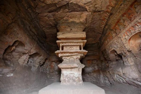 第一、二窟為一組塔廟雙窟,窟外兩側各殘存一座單層方塔,建造于公元471~494年。
