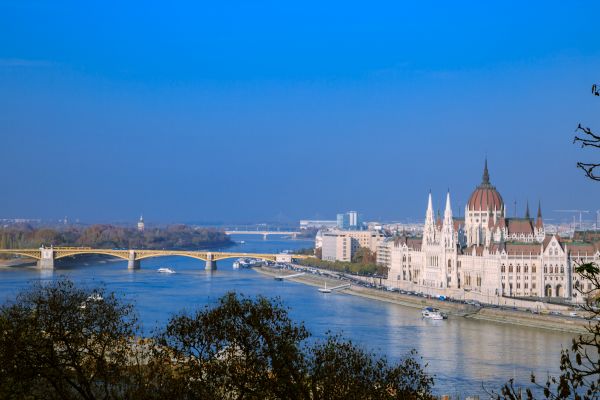 布達佩斯宛若一位天生麗質的仙女,高貴優雅,依偎在多瑙河畔。鏈子橋、伊麗莎白橋、裴多菲橋……是她頸上的一串串項鏈;1904年落成的國會大廈是她胸前的一顆徽章;兩岸掩映在綠樹叢中古趣盎然的街道和幢幢別墅是她長裙上的飄帶。她那脫離塵埃的一種清澈氣質,可謂是超出了畫圖而化生了音樂的神韻。
