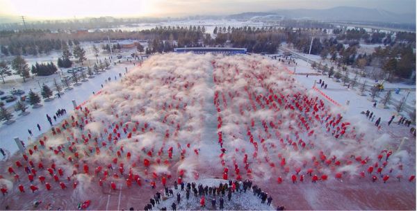 人們熱衷以各種形式體驗極寒,最熱門的活動就是潑水成冰了,滾燙的熱水遇到極寒的溫度,潑出去的水霧瞬間凝結成美麗的冰花,綻放出絢麗多彩的光環。