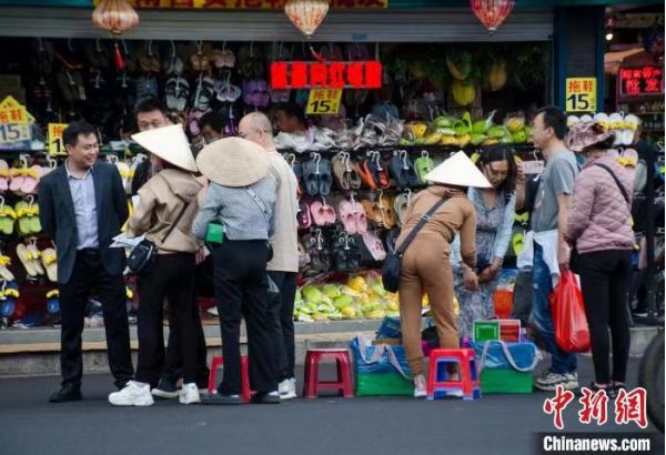 作為邊境“跨國上班族”,范氏小云也是這個行業的“老手”,過去三年沒有機會到廣西東興,她就在越南芒街的商場幫忙賣衣服。近期恢復通關后,范氏小云辭去賣衣服的工作,每天早上趕到東興“淘金”,晚上再返回芒街。“好賣的時候一天能賺兩三百元,少的時候只有幾十元,平均一個月可以賺到3000元左右,比我在芒街賣衣服的收入高一些,而且想遲一點來或者早一點回去都行。”范氏小云說。