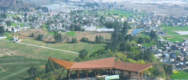 橄欖小鎮內的平頂山觀景臺,造型設計靈感源自于彝族圖騰——鷹。屋頂呈不規則形狀微微傾斜的屋頂頗有設計感,站在觀景臺上,視野廣闊可俯瞰到石龍鎮、宏模鎮全景,以及油橄欖基地的整體風貌。也可閑坐在一層平臺,品一杯香茗,撲面而來的是舒爽的山風,聞到的是清爽的茶香……