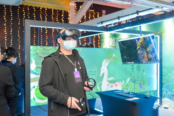 展覽現(xiàn)場,“敦煌飛天”“二道井子”等VR項目吸引了不少觀眾駐足體驗。觀眾曹女士說:“戴上VR眼鏡,伴隨著空靈的音樂和渾厚莊重的鐘聲,身邊一直有飛天舞女環(huán)繞著我,還有漫天的花瓣飄落,不自覺地想要抬手碰觸,畫面特別美,值得體驗。”