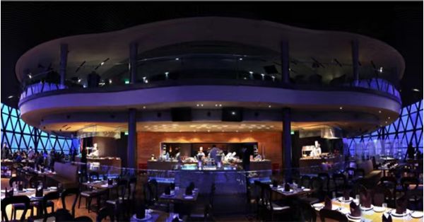 東方明珠廣播電視塔空中旋轉餐廳位于塔內上球體,高267米,建筑面積達1500平方米,是亞洲最高的旋轉餐廳。