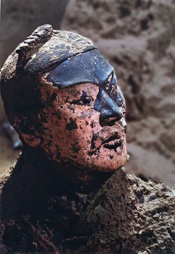 當(dāng)初的兵馬俑都有鮮艷和諧的彩繪,發(fā)掘過程中發(fā)現(xiàn)有的陶俑剛出土?xí)r局部還保留著鮮艷的顏色,但是出土后由于被氧氣氧化,顏色不到十秒鐘瞬間消盡,化作白灰。現(xiàn)在能看到的只是殘留的彩繪痕跡。