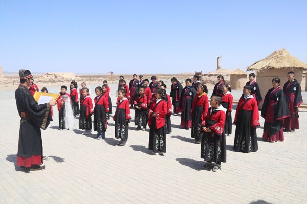 為讓游客更好地體驗玉門關文化內涵,景區今年對研學課程、研學場館、研學服飾進行提質升級,新增都尉迎賓、將士巡關、大漢軍威等文化演藝項目,通過穿漢服、游古跡、擊戰鼓、寫漢簡、品漢宴等,使游客全方位了解漢代歷史文化。”敦煌玉門關遺址景區研學部經理潘存貴介紹,景區針對不同年齡段的學生群體設計《玉關學堂》系列研學內容,讓學生們以沉浸式體驗方式感受古代開筆禮的全過程,還新增《邊塞家書》研學課程,引導學生用漢簡向家人寫一封漢代家書。此外,景區今年還新增了4間研學教室,可容納300人同時上課。