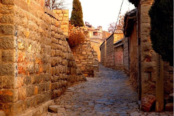 集合出發,乘車赴石家莊井陘(車程約4小時)石頭村,是一部用石頭書寫的村落史詩。于家石頭村位于河北省井陘縣城微水鎮西南約十五公里處,建于明朝成化年間,距今已有五百多年的歷史,這個石頭村在四面環山的洼地,山巒環抱,綠樹掩映,不到村頭見不到人家。當走過彎彎曲曲的山路,走進這個村子,一下就置身于石頭的世界:石樓石閣,石房石院,石桌石凳,石磨石碾,石街石巷,石橋石欄,村路也是古老的石頭鋪就的。鋪路的石頭多是青灰色,石質堅硬,歲月的摩擦使石頭棱角圓潤光亮,但這石路光而不滑,干爽潔靜,走在上面,腳下發出輕輕而有韻律的"噠、噠"的聲響,這聲音讓人心中泛起一股寧靜、幽遠的情思。站在這石頭街上,環顧四周,與腳下的石路相連的街、巷、胡同全是青色的石路,路的兩旁全是石頭房院,隨便推開一扇石門,便又會看到一個石頭筑造的小天地。