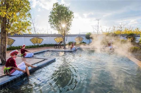 洱源九氣臺溫泉度假酒店的溫泉水,可聞到臭蛋氣味,應(yīng)為珍貴的硫磺泉。李時珍《本草綱目》引用陳藏器語曰“硫磺主治諸瘡,故水亦宜然。諸風(fēng)筋骨攣縮,及肌皮頑痹、手足不遂、無眉發(fā)、疥癬諸疾,在皮膚骨節(jié)者,入浴……”現(xiàn)代醫(yī)學(xué)也證明,硫磺泉的確對種種皮膚病有較好的治療效果,此外對神經(jīng)系統(tǒng)、關(guān)節(jié)都有保健作用,還能改善人體新陳代謝。以此硫磺泉洗、浴、泡,完全是懶漢的有氧運(yùn)動,并以視覺、嗅覺、聽覺、味覺、觸覺、心覺,六感知來達(dá)到一種身、心、靈舒暢的感覺,是一種瘦身、放松、休閑健康新概念。