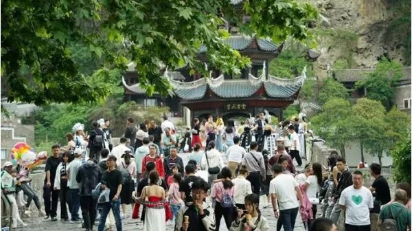 “五一”假期前三日,黔東南州依托自身文旅資源優勢,推出豐富多彩的特色活動,吸引了眾多游客紛至沓來,人們出游熱情持續高漲,各景區景點人氣爆棚。據初步監測,前三日,黔東南州接待游客281.21萬人次,同比增長34.14%,恢復到2019年同期水平的80.32%;實現旅游綜合收入27.81億元,同比增長51.43%,恢復到2019年同期水平的98.11%。