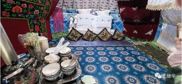 氈房里漂亮非常,進門不到一米就是大床。沒有什么家具,但是干干凈凈布草簡潔大方,有想住一夜的欲望。