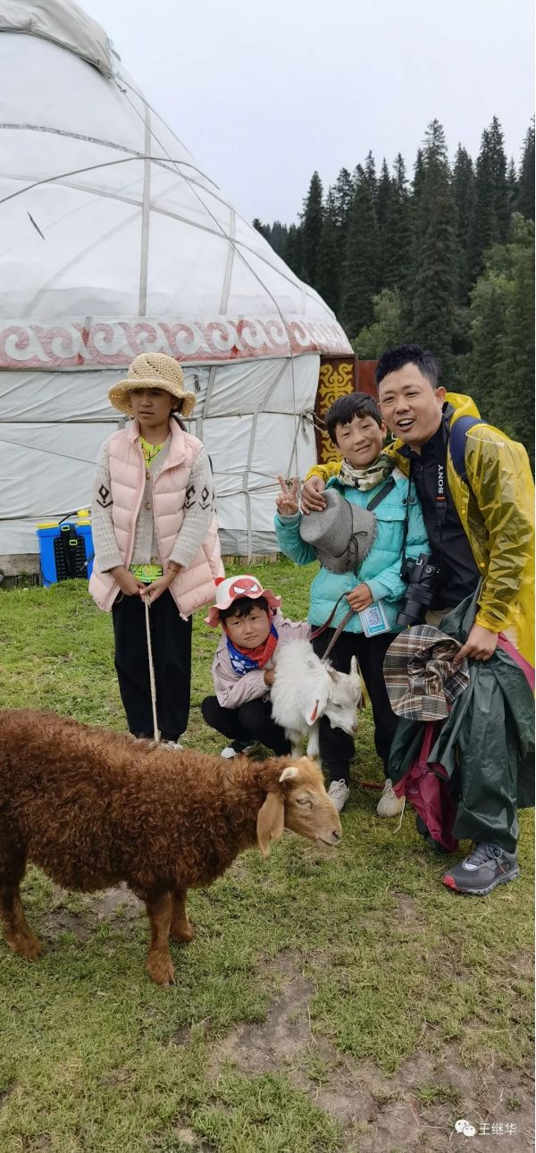 我們幾個人給他照相,我們領隊劉寶平和兩個小孩親密交談,通過交談,知道大的小姑娘一個叫阿依孜爾,一問小男孩竟然也是姑娘,叫阿依格爾。兩個小姑娘非常可愛。阿依孜爾向前面一指說這是我媽媽。我們順著她指的方向一看。