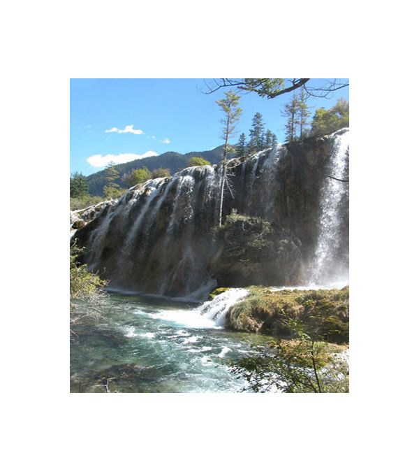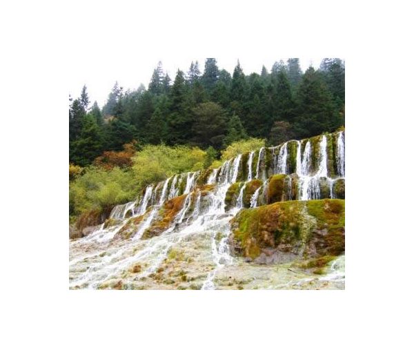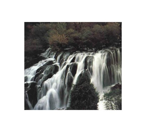 樹正瀑布由首尾相接的眾多梯湖的飛瀑,水大勢猛,勾連迥環,瀑布下瀉深溝,猶如千軍萬馬擂鼓搖旌,吼聲如雷。梯湖堤埂之上,聳立著一株株、一叢叢高原特有的各種灌木,扎根于水底,傲立在激流,常年經受流水的沖擊而不倒伏,不爛根,風姿綽約,形成特殊的植物群落和世間罕見的自然奇觀:碧水穿過叢林,漫過堤埂,跌落層層瀑布,恍若碎玉飛花!更有河灘上的叢叢沙棘沙柳,其主根深扎在碳酸巖縫里,卻還有許多一米多長的紅色須根,流水將它們梳理在一起,恰似一大把紅馬尾;紅須根隨波擺動,上下浮沉,看去活象透明碧玉中流動的紅瑪瑙……抬望眼,仰天觀云,側耳聽風,更有那岸邊大片大片粉紅色的蕎麥花,高低錯落的藏族民居,還有那早出晚歸的牛群羊群,裊裊炊煙,聲聲犬吠……樹正瀑布的一切,好象是幽深的,寧靜的,世外桃園的,卻又是生機盎然,出神入化!離開珍珠灘,沿著環山公路下行,有一片寬闊無比的山谷。山谷空曠,草木叢生,中間一縷清泉婉蜒滑過,充向下游的鏡海。小河旁有幾戶民居,如世外桃源。山谷兩側是雄偉挺拔的山峰,秋天來臨時,秋色染林,仿佛有一枝神廳的畫筆,肆 意將絳紅、桃紅、暗紫、墨綠、碧綠、鵝黃涂抹在山上。