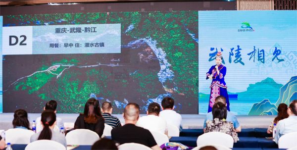 活動現場,土家幺妹廖珊以“峽谷福緣·武陵相見”為主題,全方位推介了黔江豐富的自然資源和民俗文化,以及“山水韻”“峽谷城”“武陵風”等特色文旅產品和精品旅游線路,帶領與會嘉賓“云游”黔江。