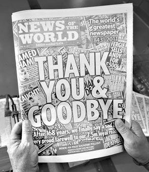 【網宣部】朋友隨聊之旅旅行社從英國歸來,打開行李包沒見啥新奇古怪的玩意兒,倒是有厚厚一沓英文報紙,封面上寫著大字標題“謝謝,再見”,竟然是《世界新聞報》的告別版!眾所周知,《世界新聞報》迫于“竊聽門”事件的壓力,已正式停刊,7月10日出版的報紙是其最后一期。朋友笑道,怎么樣,我夠走運吧,頭一回出國,就碰上了收藏“終刊號”的好機會。