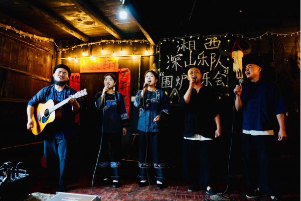 在村內的湘西深山樂隊網紅直播間,原汁原味的苗語歌曲清澈動聽,傳遞出苗家人的質樸與熱情。