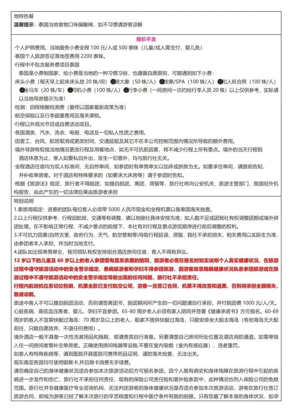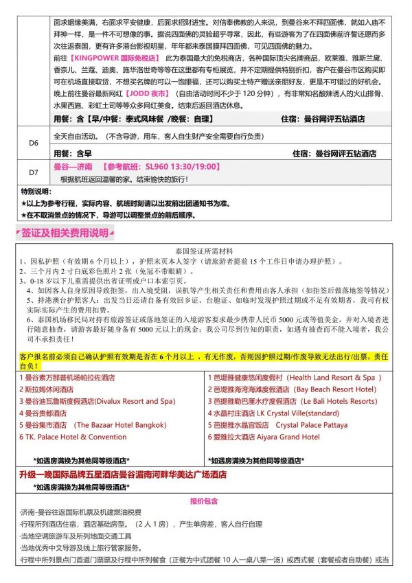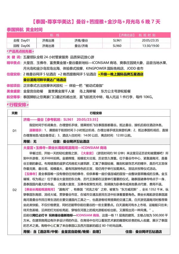 泰國7天6夜游 聊城出發 純玩 無購物 曼谷 芭堤雅 珊瑚島 金沙島 ...... 出團日期 20230610 價格 3180 報名電話 0635 8681234