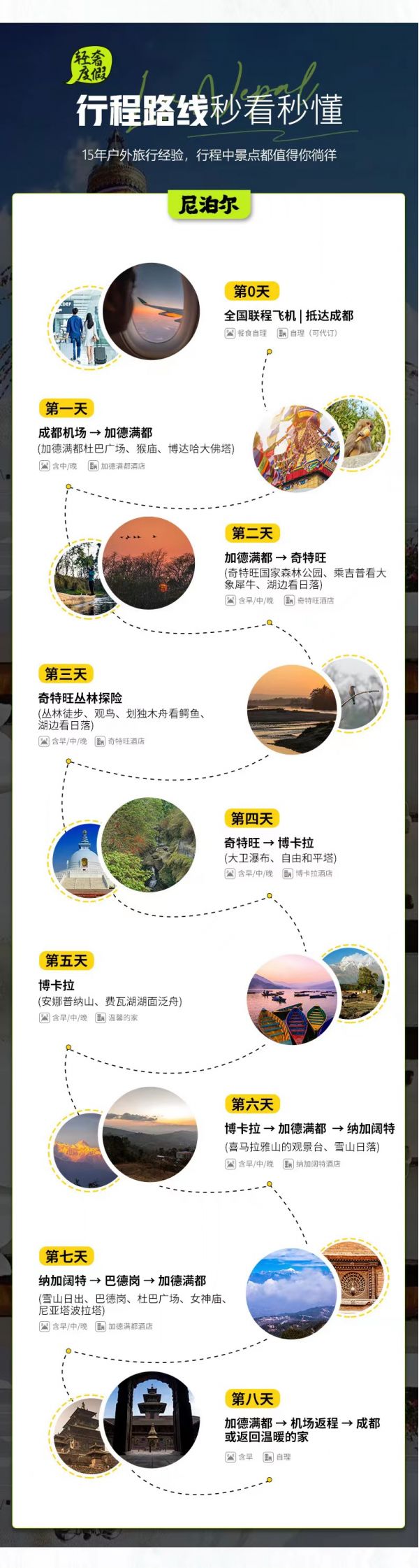 4.導游服務:15人及以上派中國領隊全程服務,保證您旅程的優(yōu)質體驗;15人以下提供尼泊爾當地全程中文領隊(成都機場有送機人員協助辦理登機牌、出發(fā)手續(xù))。