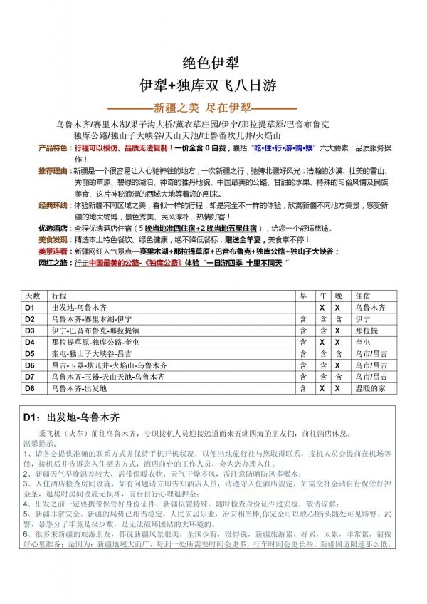 伊利-獨庫雙飛8日游 聊城發團 純玩 無購物 烏魯木齊 賽里木湖 果子溝大橋 薰衣草莊園 伊寧 那拉提草原 巴音布魯克 獨庫公路 獨山子大峽谷 天山天池 吐魯番坎兒井 火焰山 ...... 發團時間 20230615 價格 3880 報名電話 0635 8681234