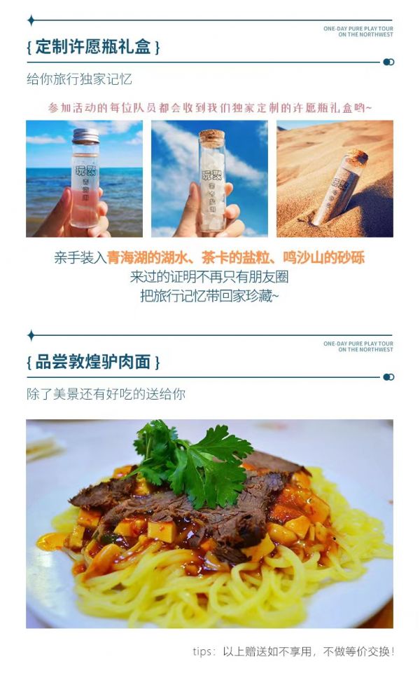 (1)贈送西寧市區接機/接火車服務,23點后由于運管規定不能接機/接站,敬請諒解。
