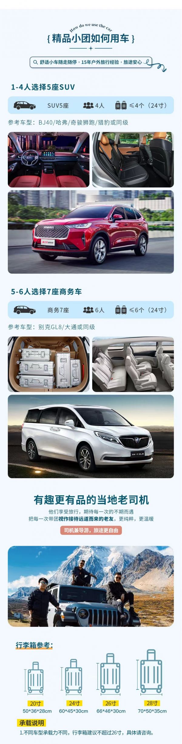 服務:由經驗豐富的司機提供向導服務,司機非導游,不進景區,敬請諒解。