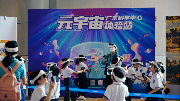 日前,由廣州市華南師范大學附屬太和實驗學校、廣州市白云區華賦學校等學校組織的上千人研學團,在廣東科學中心展開了一場“元宇宙”研學游活動