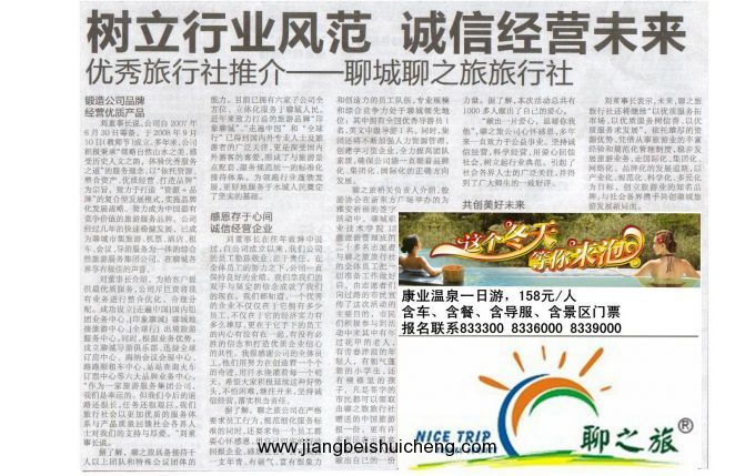 電話:0635-8333000 8336000 8339000 傳真:0635-8336665 地址:山東省聊城市東昌府區興華東路7號 郵編:252000 官方網站:m.chun-gong.com.cn 歡迎致電全國統一(免長途)熱線:400 0635 369 國內旅游請按1 國際旅游請按2 聊城旅游請按3 票務會議租車請按4 人工請按0 版權所有:Copyright(C) 劉寶平工作室_Mr.Liu Stu 聊城市旅游攝影協會 「我們」? 商會丨俱樂部丨實業公司 山東聊城聊之旅國際旅行社有限公司