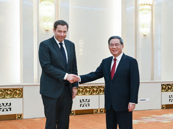 6月5日下午,中共中央政治局常委、國務院總理李強在人民大會堂會見由德國社會民主黨聯合主席克林貝爾率領的代表團。