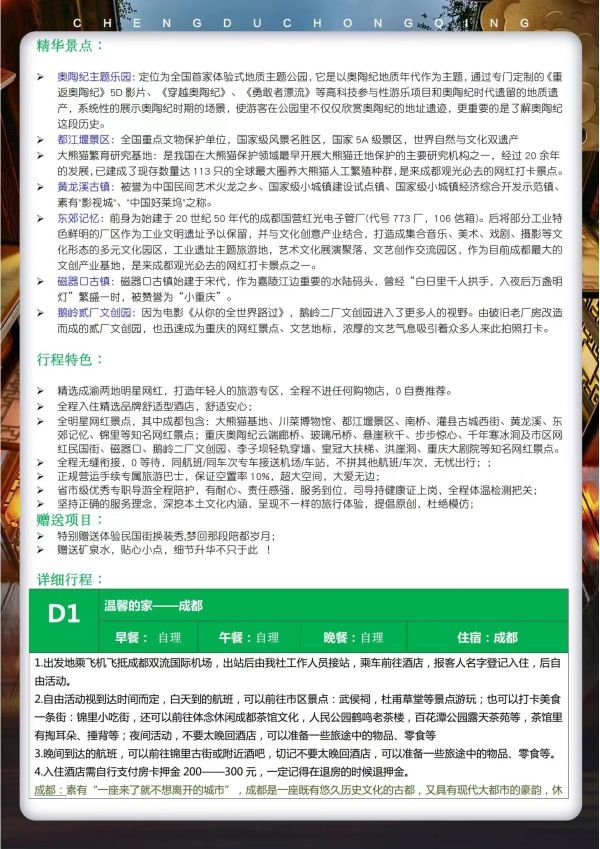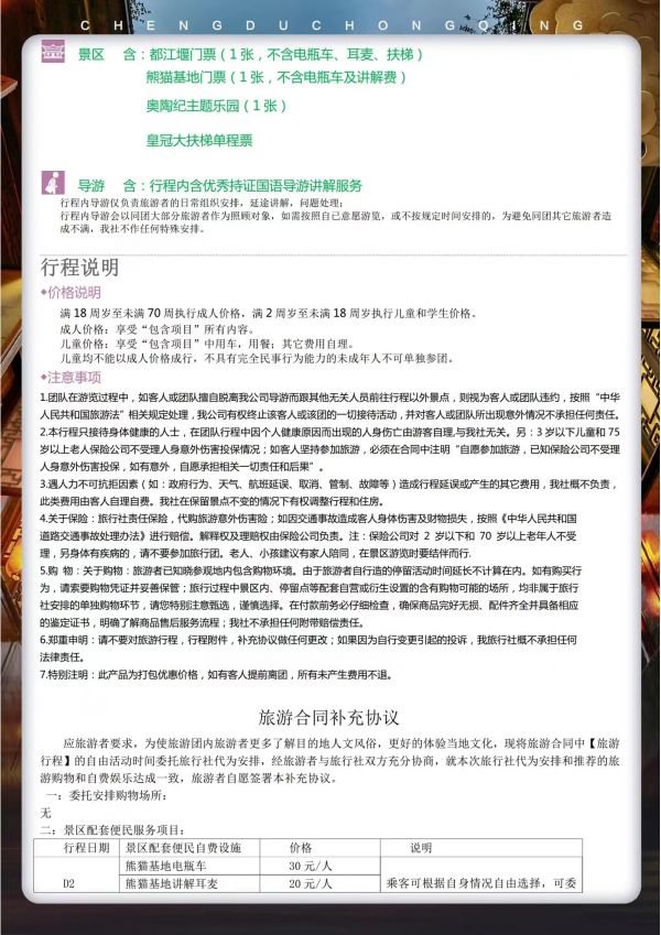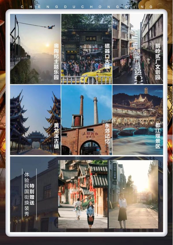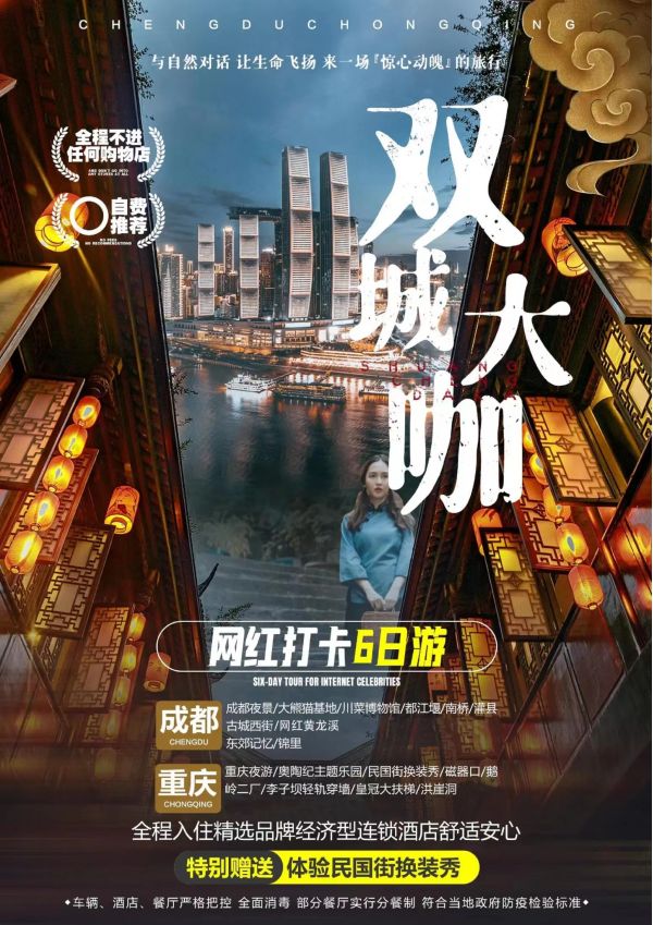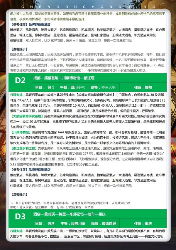 成都-重慶雙飛6日游 聊城發團 純玩 無購物 大熊貓基地 川菜博物館 南橋都江堰景區 灌縣古城西街 黃龍溪 錦里 奧陶紀云端廊橋 玻璃吊橋 懸崖秋千 步步驚心 千年寒冰洞及市區網紅民國街 磁器口 鵝嶺二廠文創園 李子壩輕軌穿墻 皇冠大扶梯 洪崖洞 發團日期 20230616 20230626 價格 4790 報名電話 0635 8681234