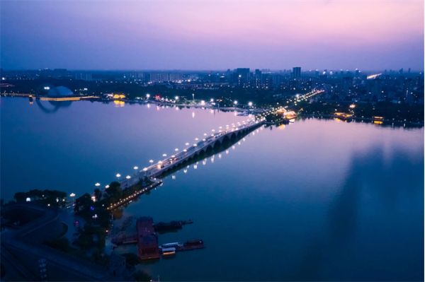 宏偉大氣的湖南路大橋,橋身兩岸有兩根對稱的主纜和37對吊索,猶如琴弦,車水馬龍的聲音就好像這座城市的交響樂曲,歌頌著城市的飛速建設與發展。