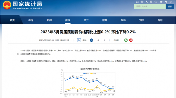 2023年5月份居民消費價格同比上漲0.2% 環比下降0.2%