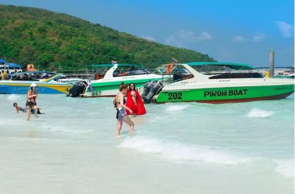 清澈,礁石、小魚、海蜇等 等盡收眼底;水上娛樂項目繁多,游客可自費選擇新鮮刺激的海上降落傘項目、體驗潛水等項目。金沙島主要海灘有達元海灘、通朗海灘、桑灣海灘、天海灘、薩美海灘以及象牙灣。其中中國隨團游客主要前往達元海灘,你既可享受在清澈湛藍的水游泳,也可以享受香蕉船、摩托艇等各種水上活動;天海灘因為其寧靜休閑深得泰國當地居民的喜愛,每逢周末就會有很多泰國家庭帶著家眷到這里;薩美海灘是另外一個比較長的 海灘,這里神的歐洲游客的喜歡,在這里經常可以看到金發女郎穿著性感的比基尼泳裝、涂抹一身防曬霜或是橄欖油,在沙灘上鋪一條大浴巾,毫無顧忌地享受日光浴;而象牙灣由于人跡罕至,所以成了好多情侶戀人的最佳選擇。金沙島因為其優美的島嶼風光,海灘風光已經成為泰國人以及外國游客來到芭提雅旅游的一個必經之地。