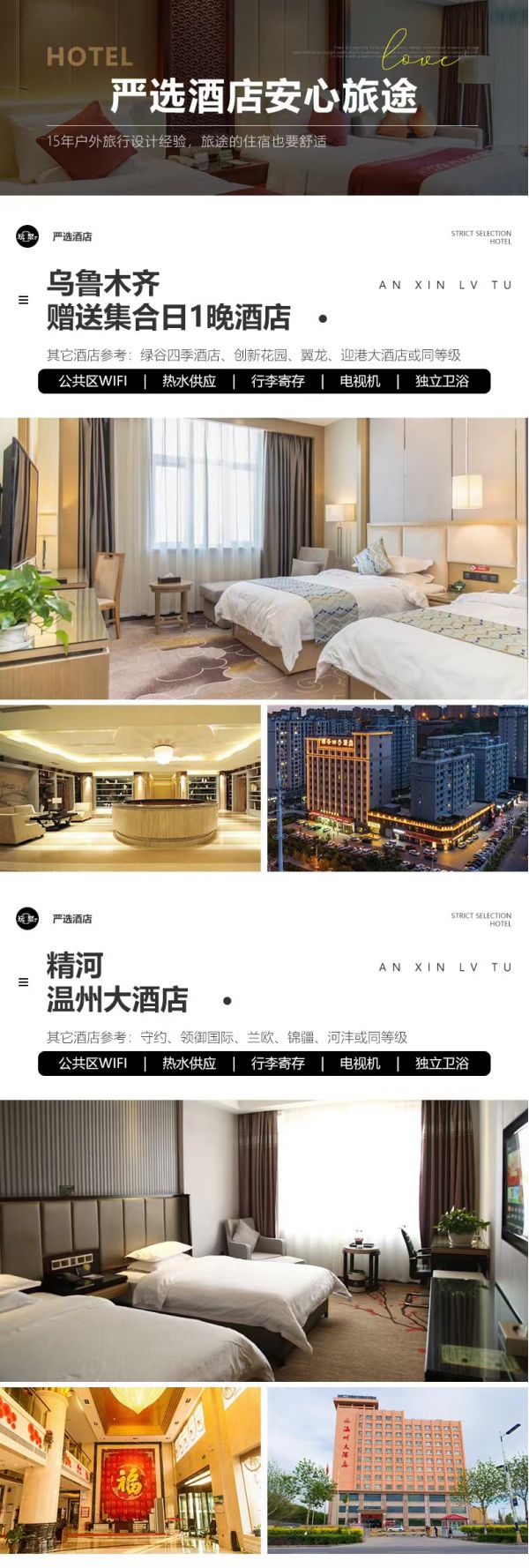 >>巴音布魯克:銀鐙酒店、白天鵝、西部情、天河源、巴音酒店B座+C座或同級酒店