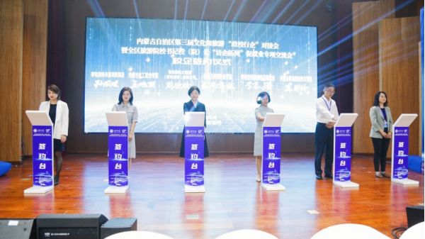 會上,部分盟市文化和旅游部門、文旅企業以及旅游院校代表進行了推介,9家院校與9家文旅企業進行了校企合作簽約。