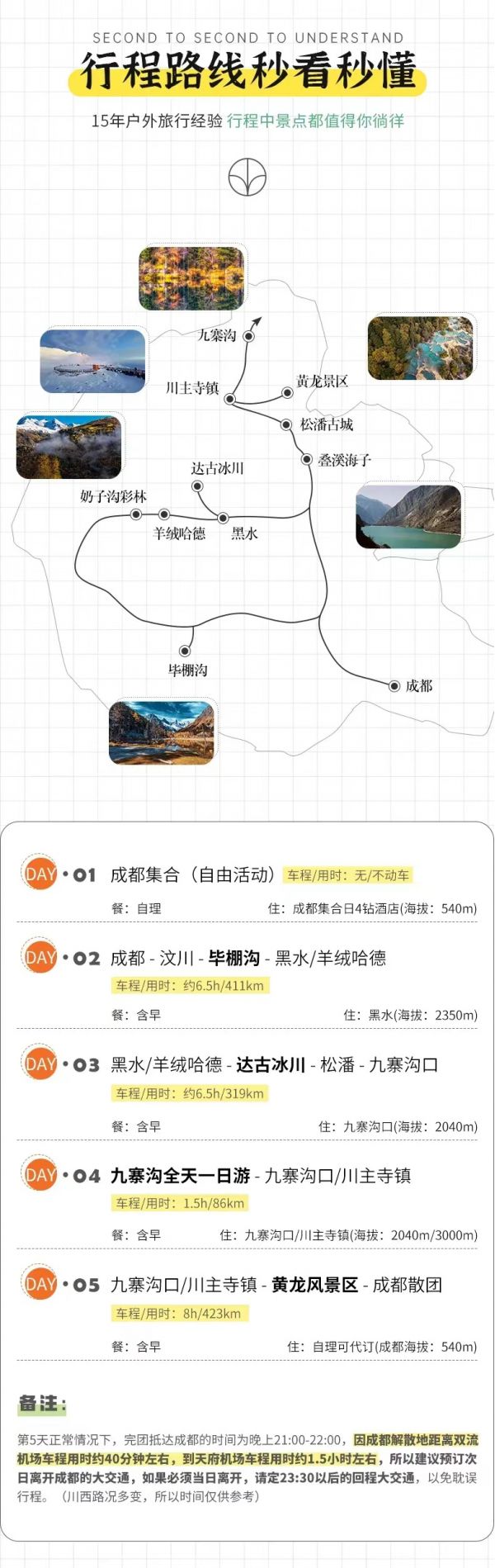 D5九寨溝口/川主寺鎮 - 黃龍風景區 - 成都 - 聊城(海拔參考:2040m/3000m-3600m-540m)