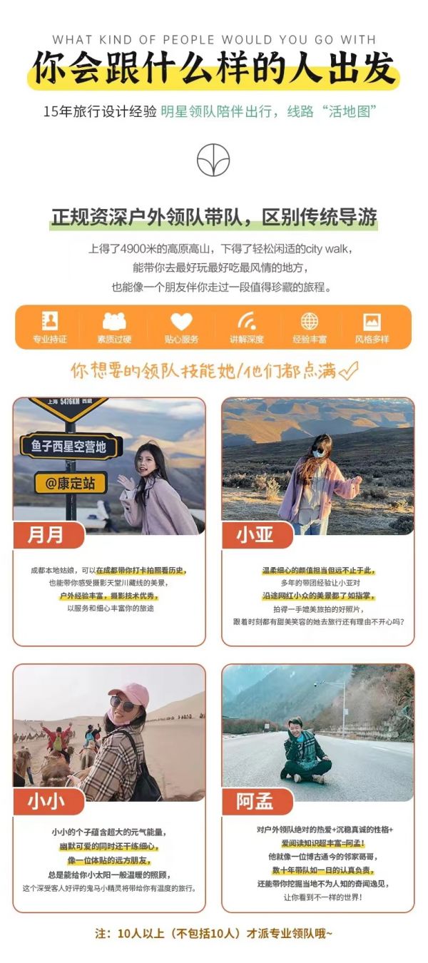 4、如途中遇不可抗因素(如高原反應、修路、塌方、車輛事故阻礙等)我方有權根據情況調整行程線路走向,此舉均是根據帶隊經驗為大家更順利的游玩而做出的改變,希望大家理解和支持,但如造成額外費用由客人自理,望您諒解;若對行程造成影響的,我方將全力協助游客進行解決,但不承擔由此造成的損失,若因此而增加的費用,敬請游客自理。