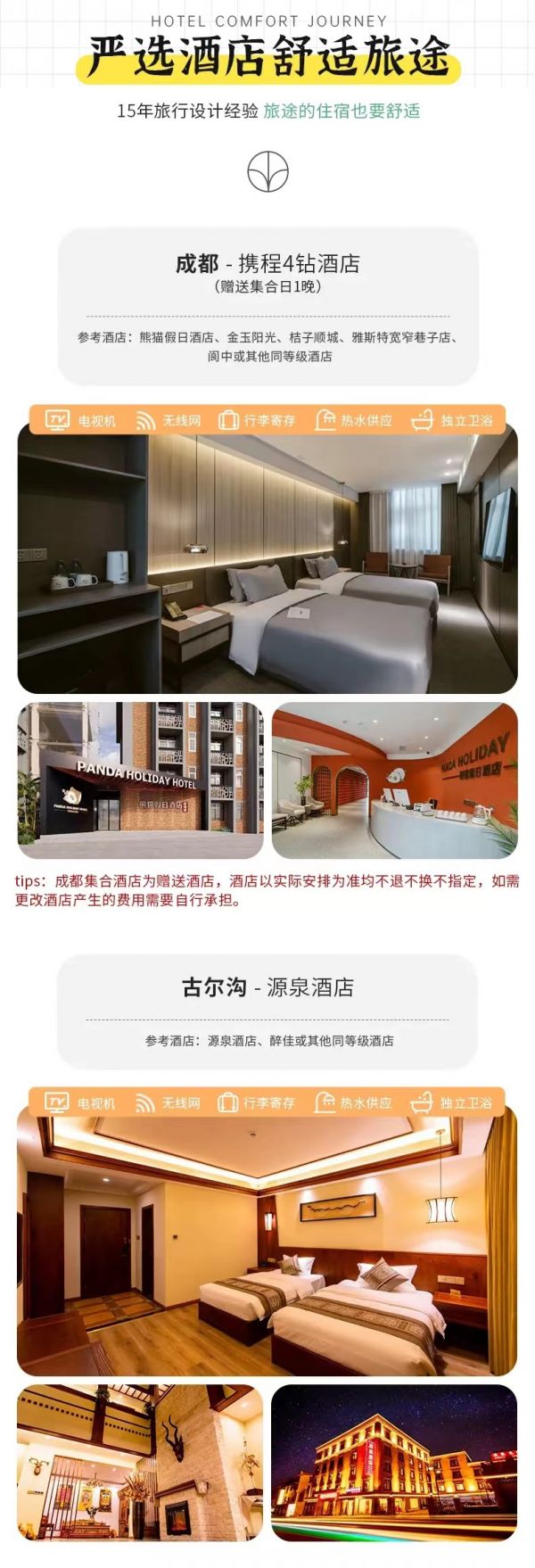 住宿:成都集合日贈送攜程4鉆酒店1晚說明”