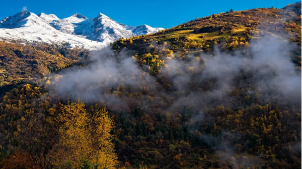 而后乘車前往【達古冰川】,達古冰川是全球海拔最低、面積最大、年紀最輕的冰川,這兒的秋天既有秋的絢麗,又有冬的純凈,宛若一個五彩斑斕的童話世界。我們從景區門口坐觀光車(70元/人,費用自理,必須乘坐)到索道口的路上會遇見大大小小的湖,湖畔色彩斑斕的彩林倒映在湖面上,與湖底的顏色混合成了一個異彩紛呈的彩色世界,遠處的雪山在陽光下,顯得更加的雄偉壯觀、如夢如幻。很快我們就能到達金絲猴經常出沒的【金猴湖】,如果足夠幸運,在這里能看到金絲猴。