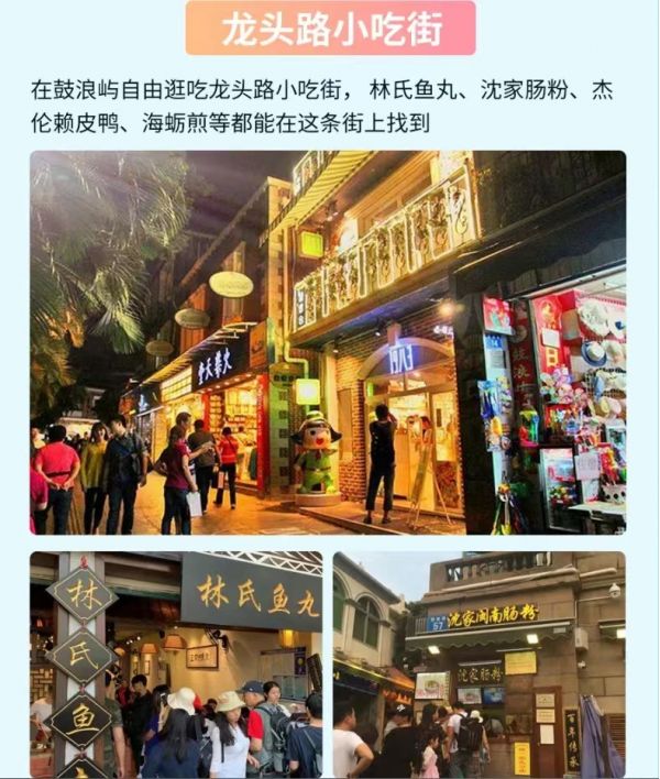 若您抵達的時間較早,可自行前往曾厝垵、南華路文化吧一條街、白鷺洲酒吧文化一條街、鐵路文化公園、中山路商業(yè)街等地方自由活動。