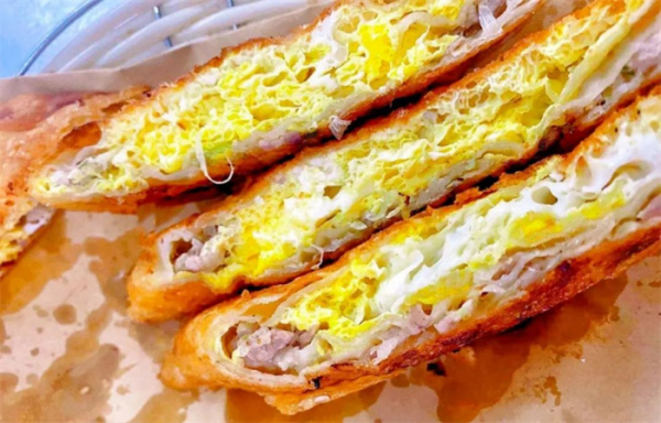 沙鎮(zhèn)呱嗒用料講究,必須是精細白面,用上等的動物油和植物油煎制,并加入其他佐料。其餡料有肉餡、雞蛋餡、肉蛋混合餡等多種,隨季節(jié)變化,按不同比例制作。以風攪雪為例,聽此名如雪景般迷人,緋紅的鮮肉中,環(huán)繞的是黃的白的雞蛋,像一陣陣旋風,盤旋攪擾起片片雪花,風起云涌,席卷味蕾。