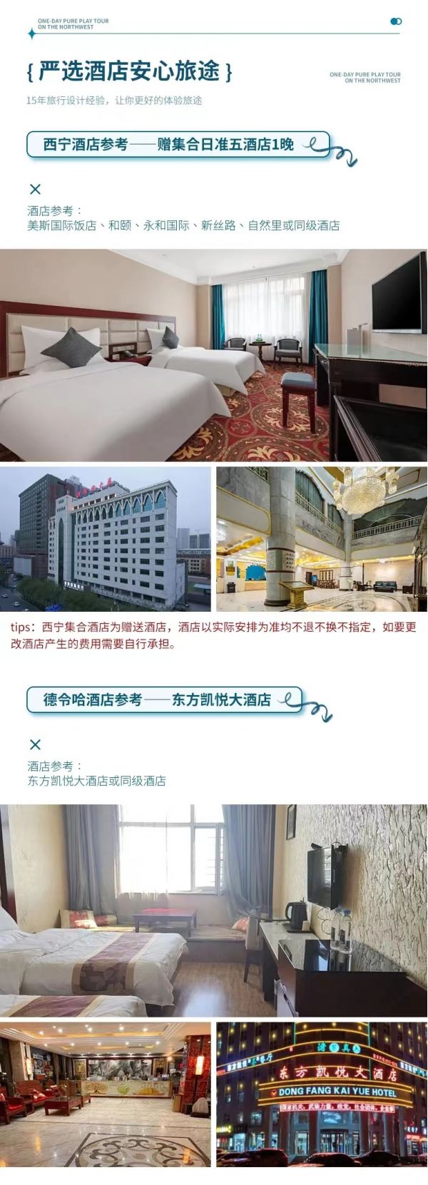 3.到達西寧后自行前往指定酒店入住,辦理入住時需要交押金,房費已付,押金自理,報姓名拿房卡。