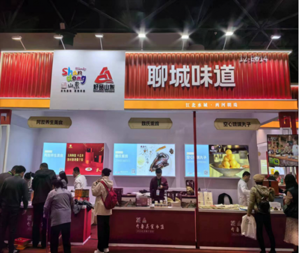 阿膠養(yǎng)生美食、魏氏熏雞、空心琉璃丸子等“聊城味道”以及臨清桑黃、東阿阿膠、冠縣靈芝“聊城新三寶”在現(xiàn)場予以展出。此外,活動現(xiàn)場還展示了具有濃郁地方特色的文創(chuàng)產(chǎn)品,如義珺軒葫蘆、紅木鑲嵌玉石花鳥插屏、紅木鑲嵌佛手如玉等,吸引力大量參觀者駐足欣賞。