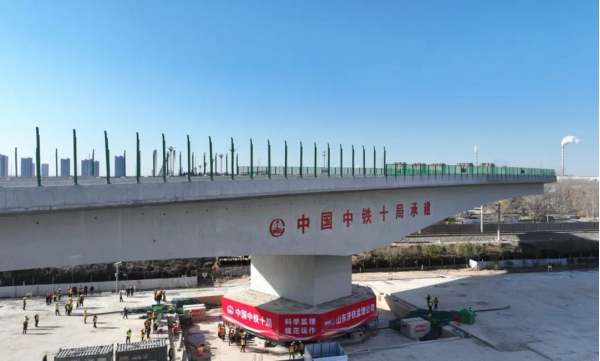 11月30日,聊城西關街西延項目高架橋工程25000噸T構橋梁逆時針旋轉96.5°,實現精準對接,標志著聊城西關街西延項目高架橋工程建設取得突破性進展。