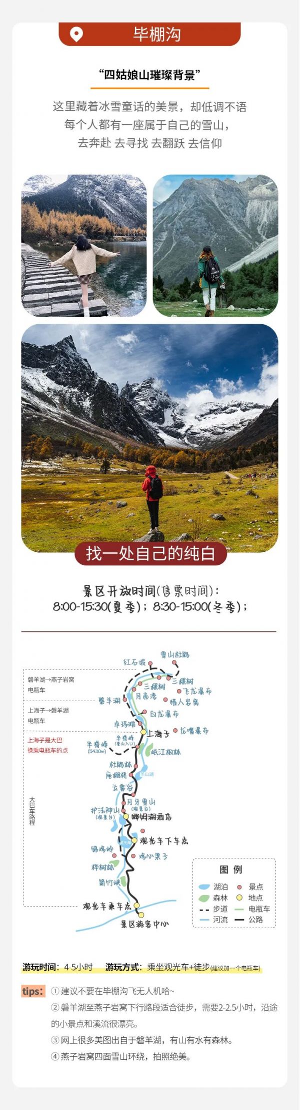 門票:畢棚溝觀光車60元/人、電瓶車20-30元/人(上下4段,分段計(jì)費(fèi),建議乘坐);墨石公園觀光車20元/人;
