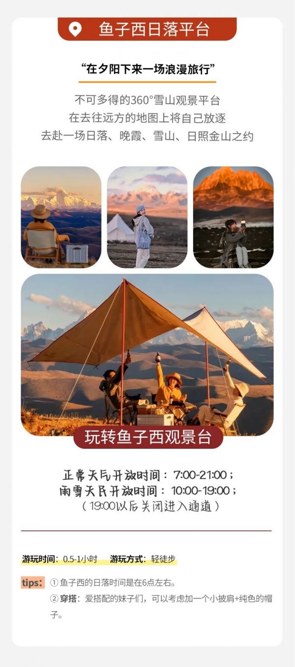 ? 隨后前往【魚子西】在這里你可以感受日照金山的壯闊, 也可以和雅拉雪山來一次近距離的合影,還可以遠(yuǎn)眺貢嘎雪山和云海。夜深了,還能看到肉眼可見的星空和銀河。游覽結(jié)束后經(jīng)塔公草原返回新都橋——被譽(yù)為“攝影家的天堂”,又被稱為東俄洛,光影變化極其美麗。游覽結(jié)束后經(jīng)塔公草原返回新都橋——被譽(yù)為“攝影家的天堂”,又被稱為東俄洛,光影變化極其美麗。