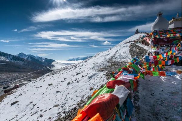 ? 隨后翻越有“康巴第一關(guān)”之稱的【折多山】,之所以稱它為康巴第一關(guān),是因?yàn)檎鄱嗌胶0问侵匾牡乩矸纸缇€,以東高山峽谷,以西則是青藏高原的東部。在折多山埡口,有一堵布滿經(jīng)幡的祈愿墻,也被稱作【川藏第一祈福墻】,除了欣賞折多山的美麗景色,大家還可以在飄飛的經(jīng)幡中為親朋好友祈福。