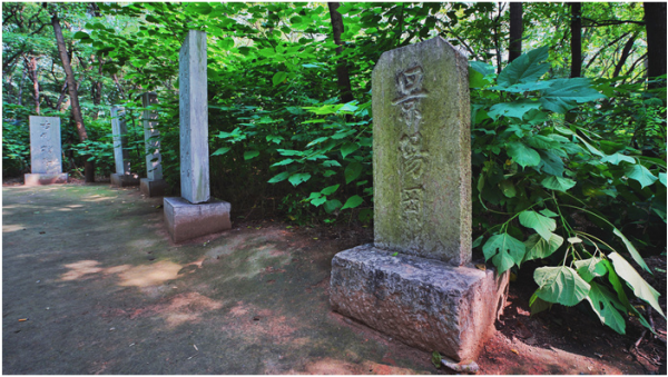 虎嘯亭:位于景區(qū)西部,六角單檐,由徐悲鴻的夫人、書(shū)法家廖靜文題名。